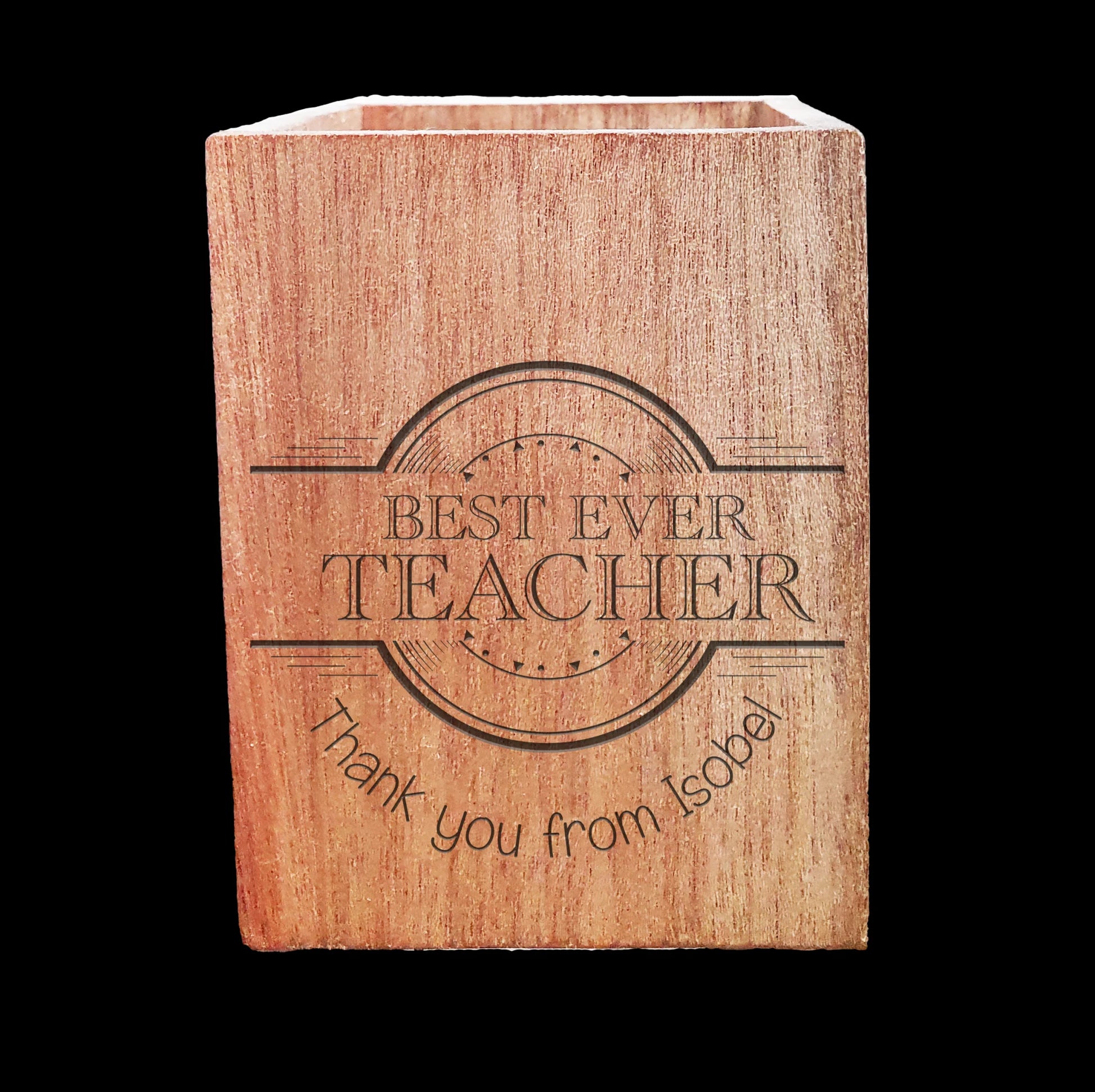 Measuring 90mm wide x 90mm deep x 120mm high, it’s the perfect size for pens, pencils, and all those little classroom essentials. 📚 Add a personal touch with the teacher’s name and student’s name expertly laser engraved on the front – a heartfelt keepsake that’ll be cherished long after the last bell rings. 💖