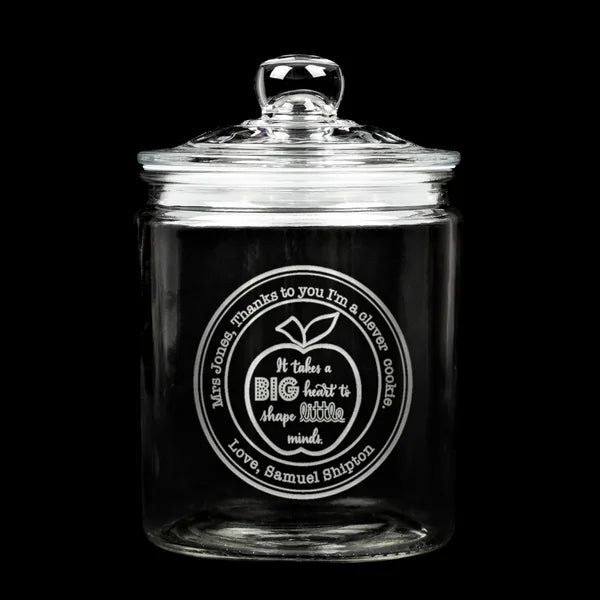 Crafted from heavy soda-lime glass, our vintage-inspired cookie jar features a matching airtight lid with a polyethylene seal to keep your biscuits, cookies, or home-baked goods fresh for longer. Each jar is laser-engraved with your chosen name or message, adding a personal touch to your home décor.
