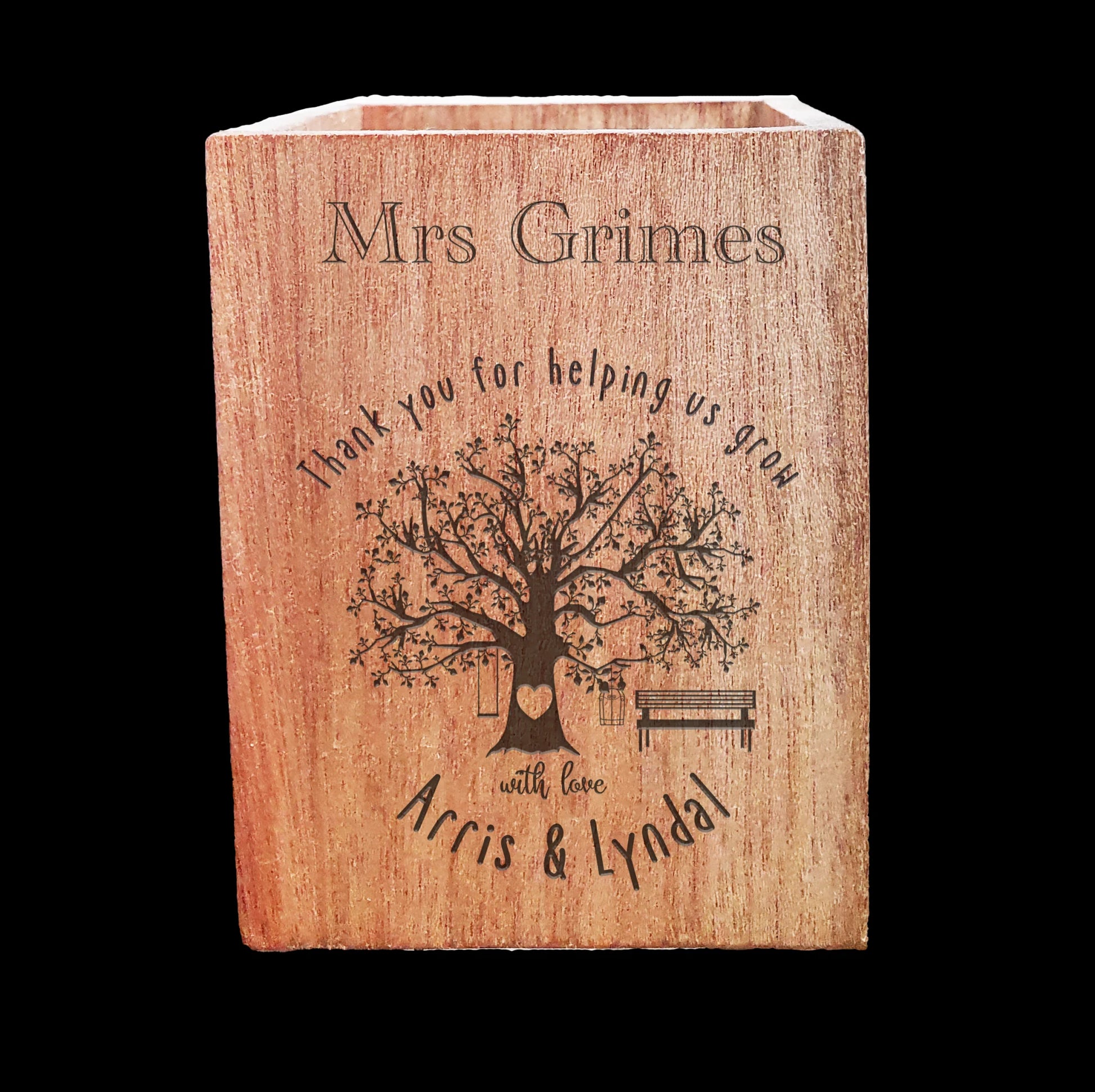 Measuring 90mm wide x 90mm deep x 120mm high, it’s the perfect size for pens, pencils, and all those little classroom essentials. 📚 Add a personal touch with the teacher’s name and student’s name expertly laser engraved on the front – a heartfelt keepsake that’ll be cherished long after the last bell rings. 💖
